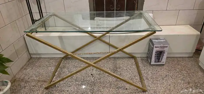 طاوله مدخل او خدمه كبيره القاعده حديد تحتاج تجديد بويا والقزازه نظيفه
