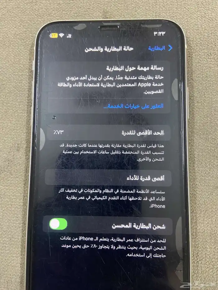 USED للبيع ايفون 11 عادي حالة البطاريه73 غير مفكوك الشاشه فيها حكات ولا تحجب الرؤيه بس مهوب كسر السوم واصل 490 والبيع قريب الموقع الخرج