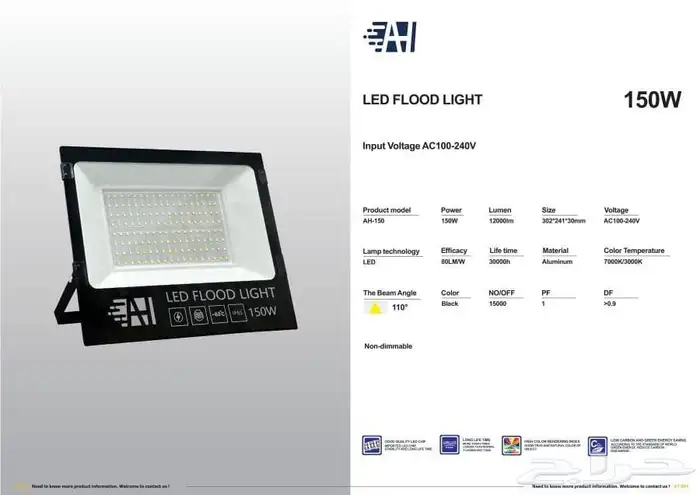 السلام عليكم ورحمه الله وبركاته نعرض لكم منتجات كشافات كهرباء بافضل المعايير المواصفات ضمان سنتين شركه اي اتش يوجد 50 وات و 100 واط و150 واط و200 وات و 250 وات و300 واط و400 واط و 600 وغط جميعها اسعار جمله يوجد اللون الابيض والاصفر والملون والاخضر شركه اي اتش افضل شركه وافضل جوده باقل الاسعار جمله الجمله اطلب ولا تتردد توصيل داخل جده وداخل المملكه عبر المخرجين بسعر 15 ريال فقط اطلب واشوف تقييماتي في حراج